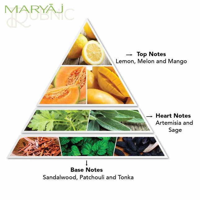 The heart note is followed by a musky, ambery and woody base note. This induces a warm and sharp aroma that uplifts the mood.