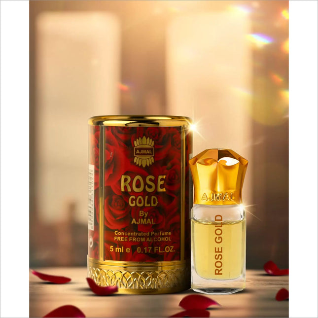 Ajmal new gold series come with 5ml beautiful presentation. New gold series have 10 different fragrance.This is Rose Gold 5ml Box and Bottle.