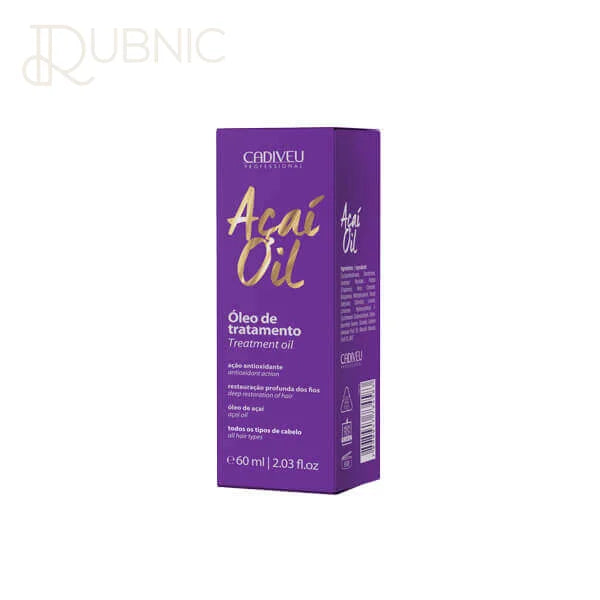 Cadiveu Acai Oil Treatment Oil restores deeply, removes frizz, shields and offers extreme shine. It is the only oil with sun protection and shields the color of the hair against yellowing and fading.
