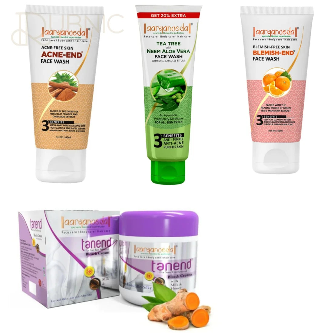 AARYANVEDA Tanend De-Tan Bleach Cream & Acne-End Face Wash & Blemish-End Face Wash & Tea Tree With Neem Aloevera Facewash