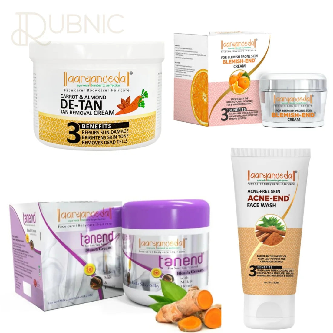 AARYANVEDA Tanend De-Tan Bleach Cream & Blemish-End Cream & Carrot & Almond De-Tan - Tan Removal Massage Cream & Acne-End Face Wash