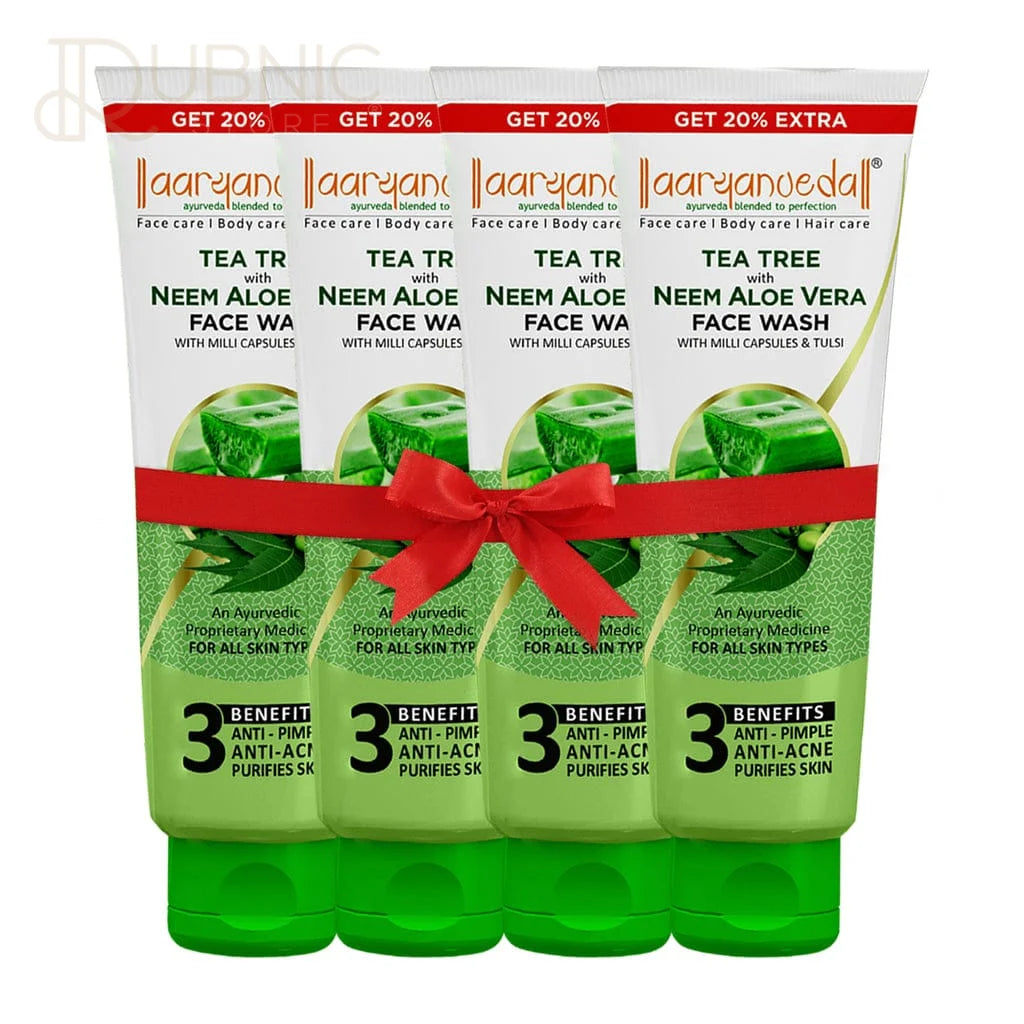 AARYANVEDA Tea Tree With Neem Aloevera Facewash With Millicapsules & Tulsi pack of 4