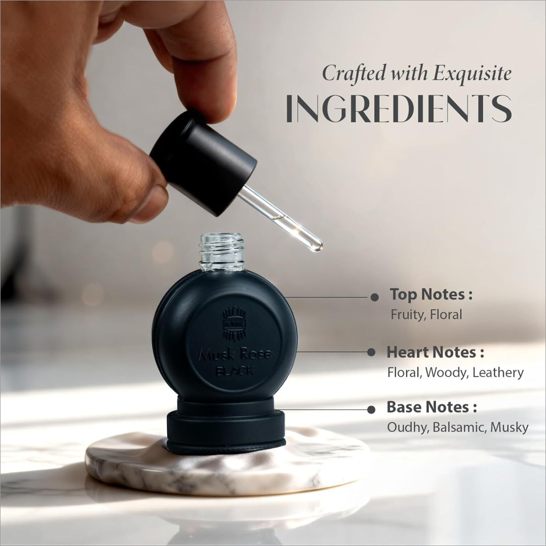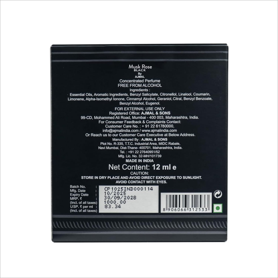 Experience the timeless elegance of Ajmal Musk Rose Black. It is not just a perfume; it embodies the essence of character and individuality. Perfect for layering or wearing alone, this unisex attar perfume enhances your natural aura and complements your every look.