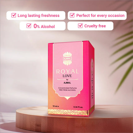 Experience the enchanting allure of the Royal Love Attar Concentrated Perfume for women. This exquisite 10 ML fragrance captures the essence of romance, weaving a captivating tale through its luxurious scent profile. With a blend of lush floral and fruity notes, this attar is designed for the modern woman who embraces her individuality and finds love in every moment.