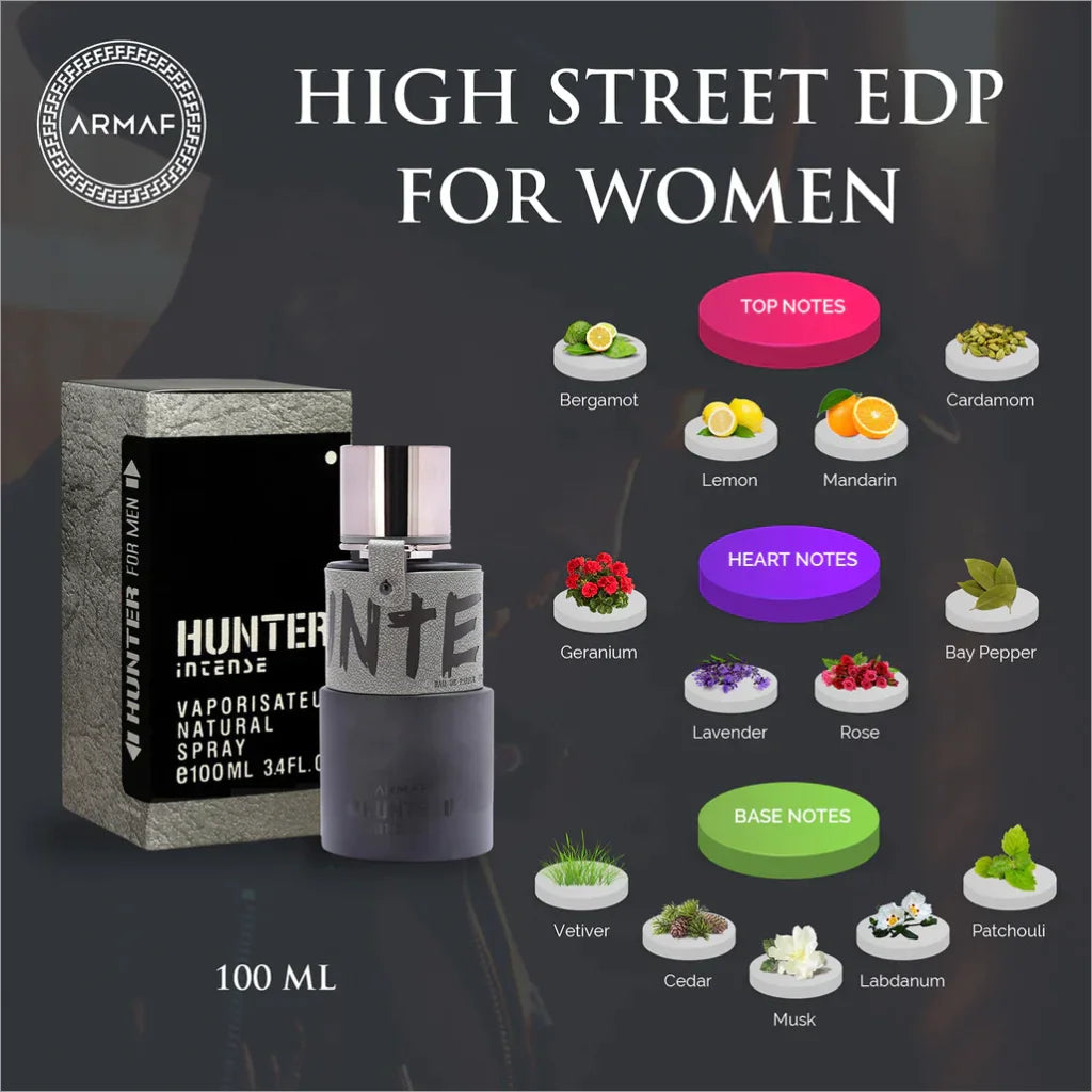 Discover the captivating allure of the Armaf Hunter Intense Eau De Parfum 100ML. This exquisite fragrance is a perfect choice for those who seek a scent that exudes confidence and sophistication.
