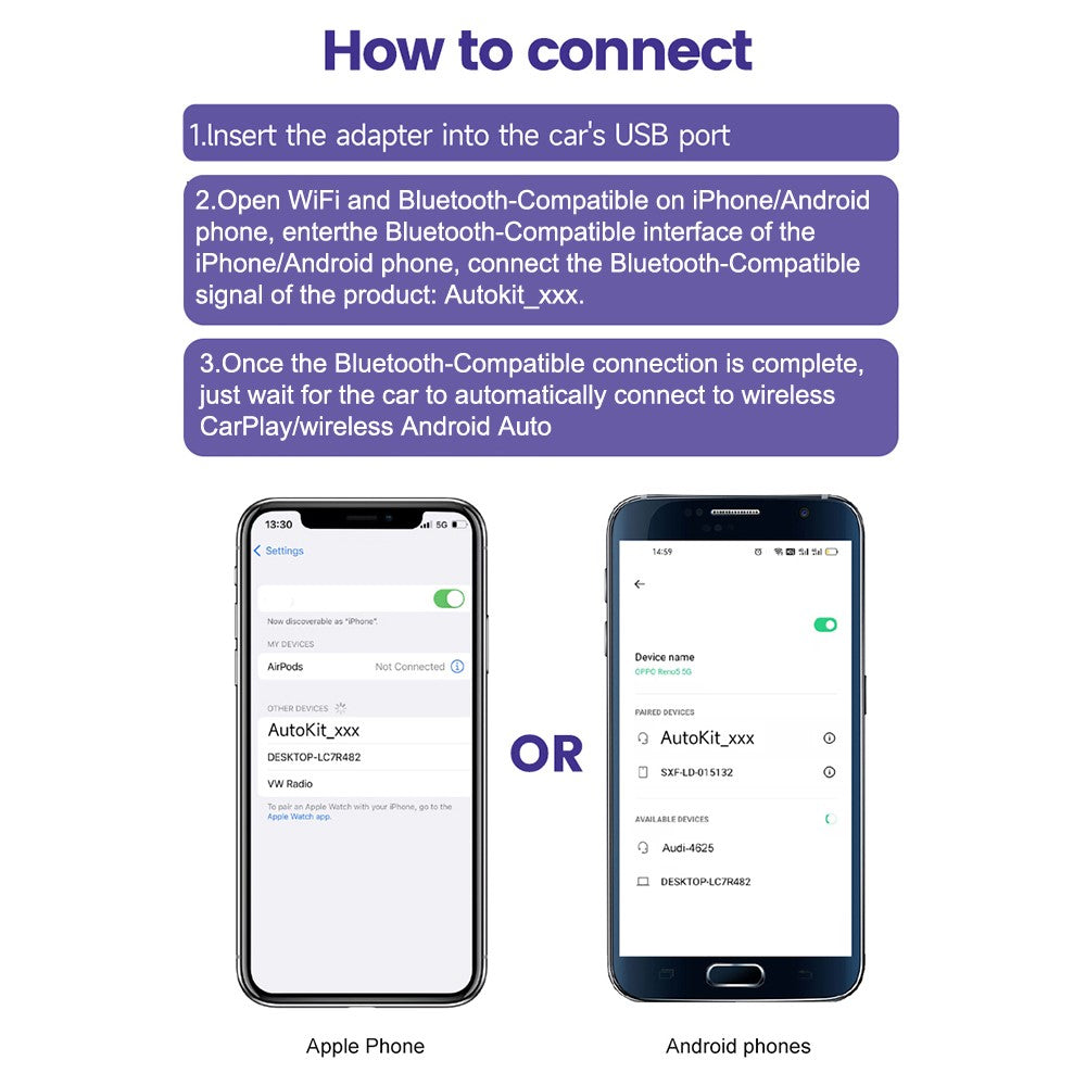 - 【Wired to Wireless Adapter】This innovative wireless car adapter converts wired Android Auto to wireless Android Auto and wired CarPlay to wireless CarPlay