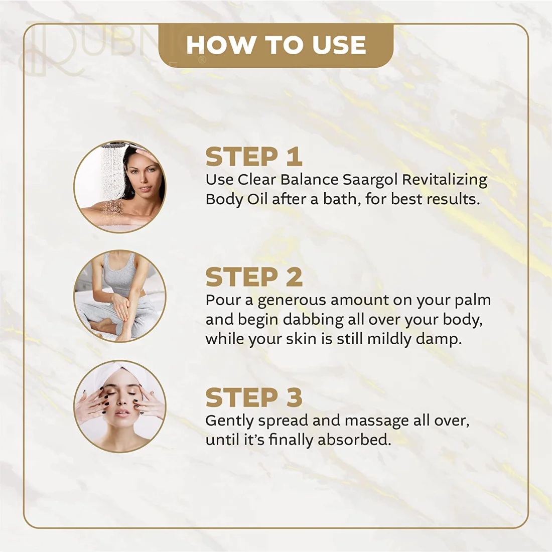 But that's not all! The Clear Balance Revitalizing Body Oil boasts a multitude of benefits that improve the appearance of your skin. It helps to tone your skin, reducing the visibility of scars, spots, and other imperfections. Say hello to a smoother, more even skin tone that radiates health and confidence!