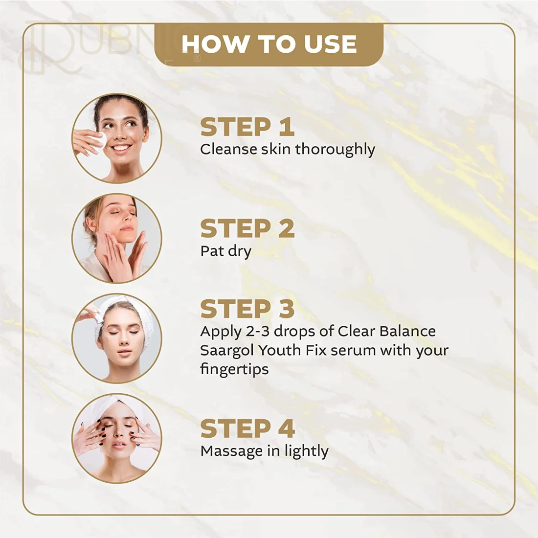 Don't wait any longer to achieve the younger-looking, healthier skin you desire. Get your Clear Balance Saargol Youth Fix Serum today!