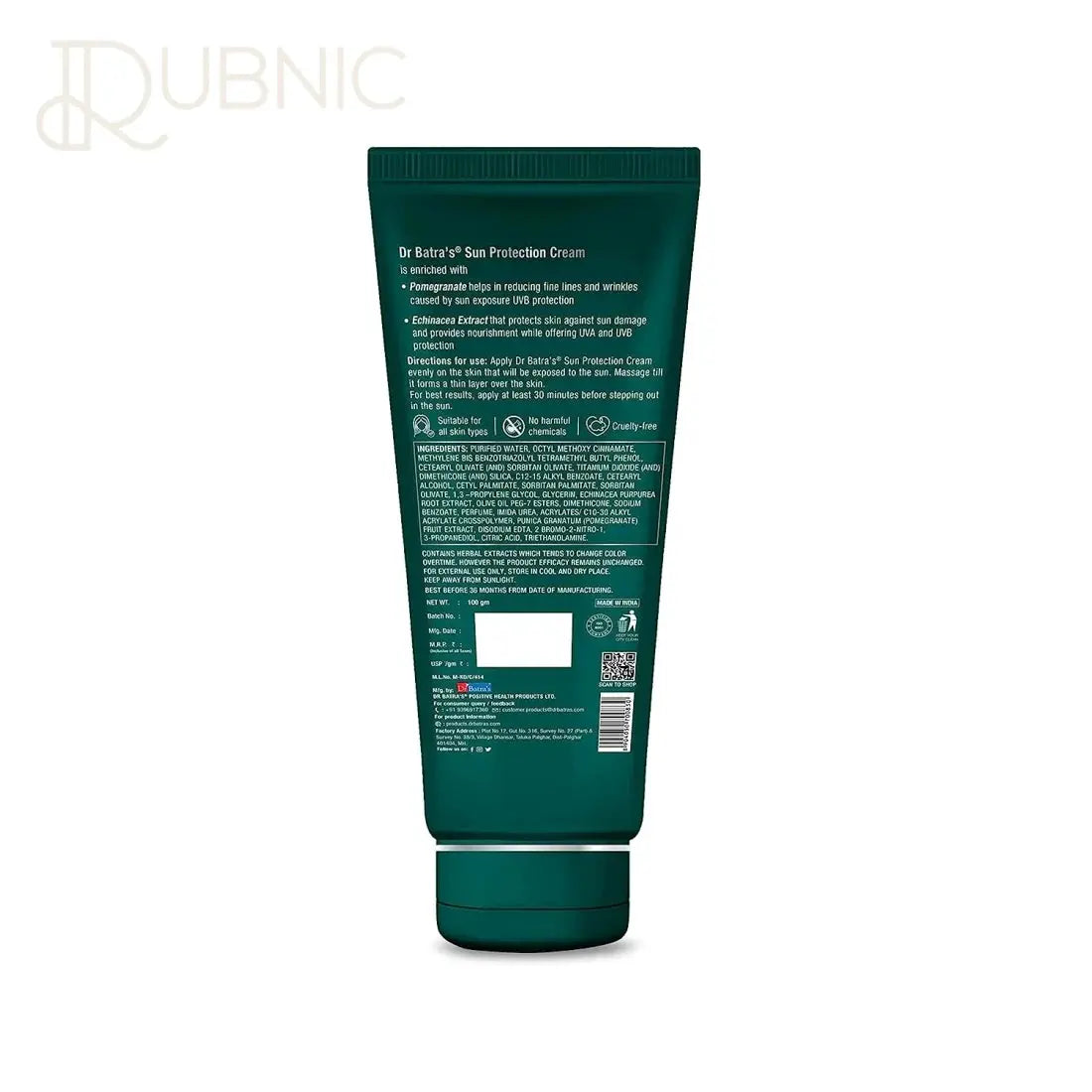 Enhance and protect your skin with Dr. Batra's SPF 30 Sun Protection Cream - Natural Formula, Non-Greasy. This sun cream is designed to provide effective protection from harmful UVA and UVB rays while nourishing your skin.