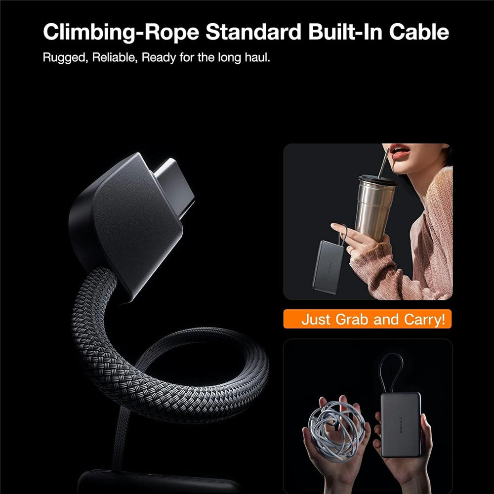 Durability is a key highlight of this design. The integrated cable doubles as a sturdy lanyard made from climbing rope material, ensuring it can endure over 20,000 bends. So, whether you're out for a hike or on your daily commute, you can rely on the TORRAS Mini Power Bank to keep your devices powered.