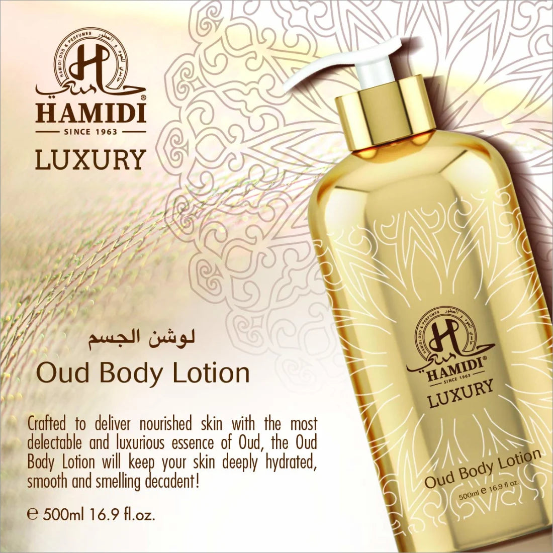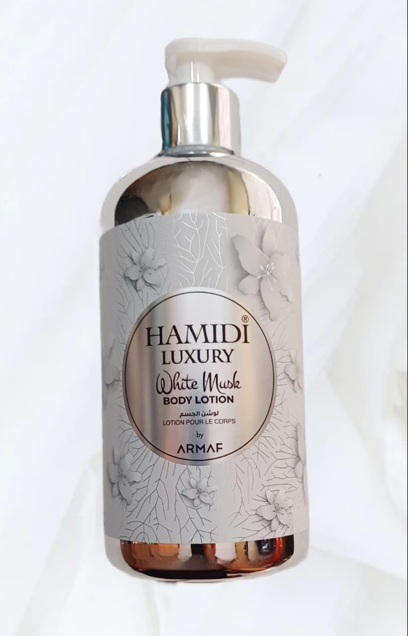 Transform your skincare routine with Hamidi Luxury Fragrant Body Lotion, an exceptional luxury body lotion designed to provide deep hydration and an enchanting aroma. This nourishing moisturizer is perfect for anyone seeking to elevate their daily self-care rituals. Infused with exotic notes of musk, oud, amber, and rose, this lotion offers a sumptuous fragrance profile that lingers throughout the day.