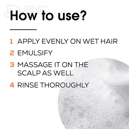 Next, indulge your hair and scalp with the Hair Spa Deep Nourishing Conditioner. Distribute evenly on wet hair and scalp, emulsify, and leave it on for 3-5 minutes. Rinse thoroughly to reveal nourished and revitalized hair.