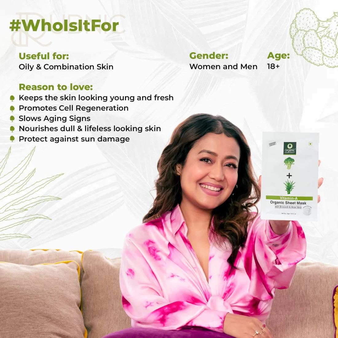 Get Assistance in Reducing Fine Lines, Wrinkles, and Saggy Skin with Organic Harvest Vitamin A Day Face Sheet Mask