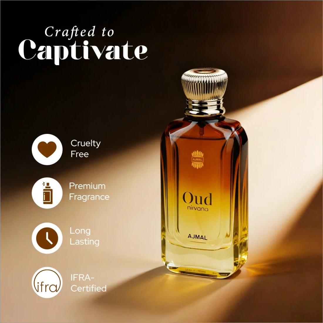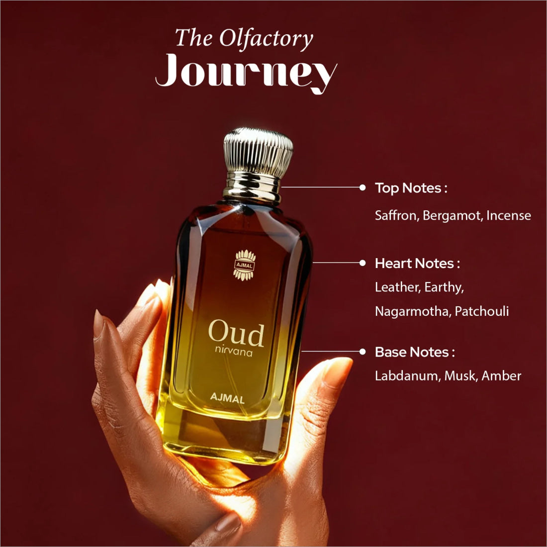 The Oud Nirvana Perfume is known for its exquisite scent profile that evolves beautifully over time. It opens with a blend of fresh and aromatic top notes that entice your senses. As the fragrance settles, the heart reveals deeper, woody undertones topped with hints of floral notes, offering a bold yet balanced fragrance.