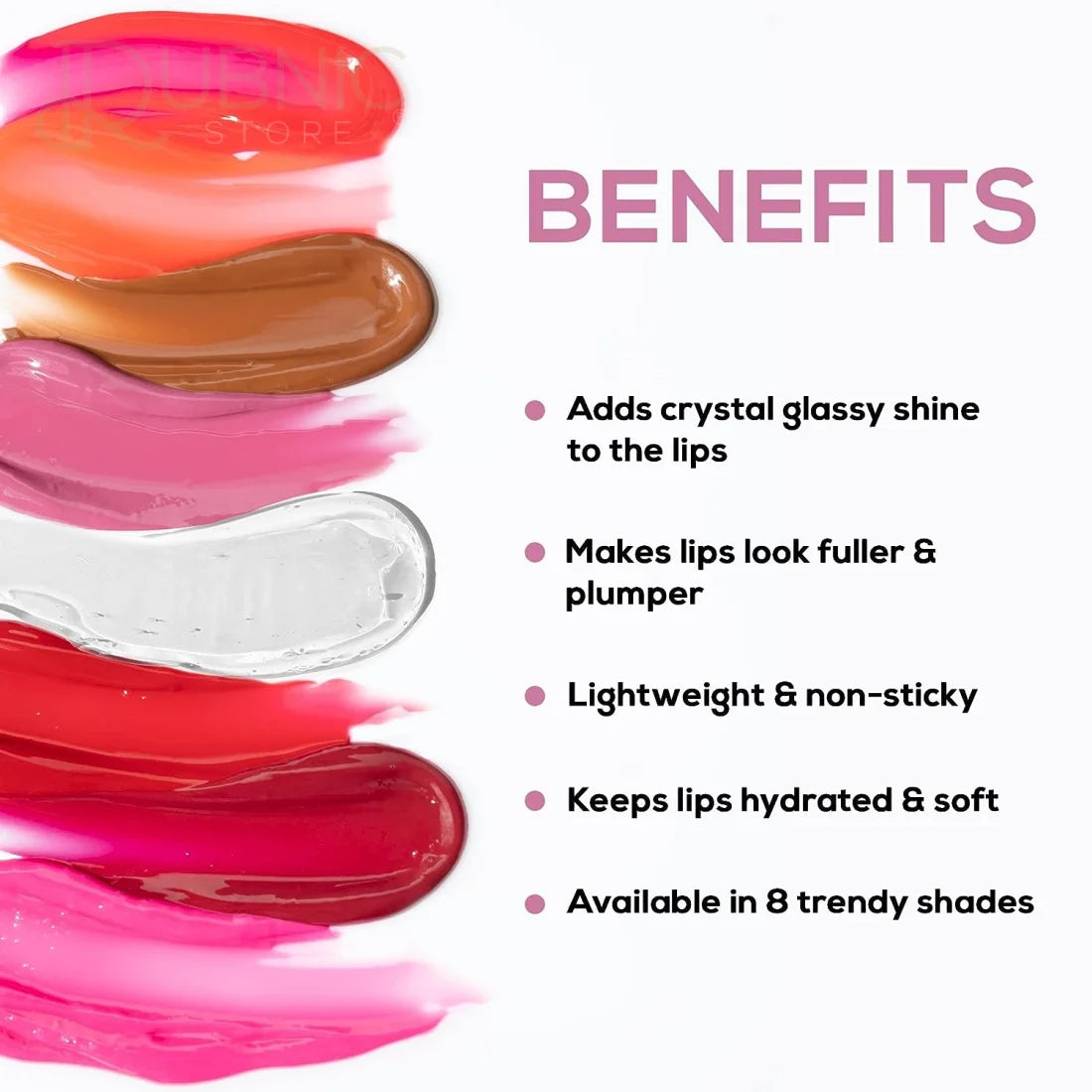 Our Crystal Ball Lip Gloss is the ultimate statement-making gloss. Inspired by the mystical properties of crystals, its ultra-glossy formula gives your lips a mesmerizing, otherworldly glow in eight trendy shades. Whether you want to channel your inner celestial diva or just add a touch of magic to your look, this gloss has got you covered. Top it over your favorite lip color or wear it alone, it will accentuate your lips and make them look plumper with a swipe. Its hydrating formula glides easily on the lips and keeps the lips soft and smooth. Enriched with nourishing oils and vitamins to keep your lips feeling soft and smooth, while sleek travel-friendly packaging makes it easy and quick to use even on the go! So go ahead and cast a spell on everyone you meet with RENEE Crystal Lip Gloss.