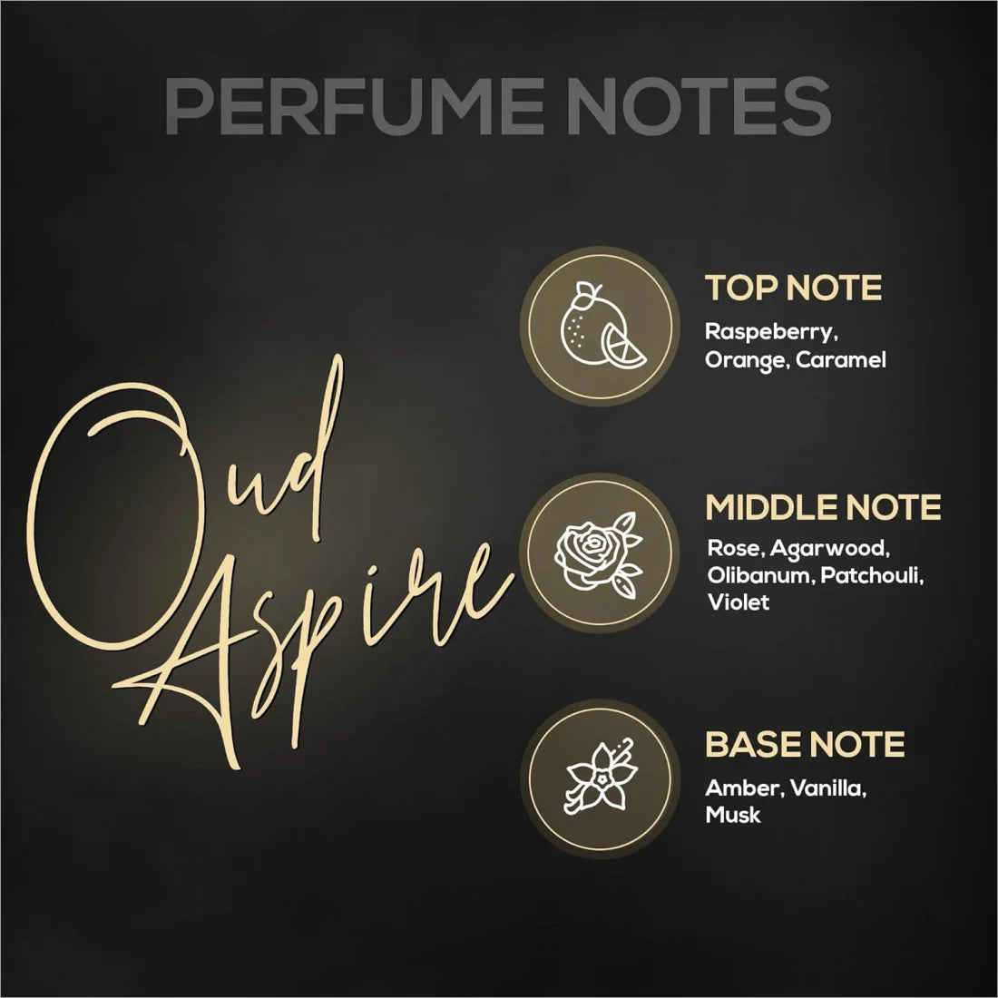 This blooming perfume is a unique combination of notes from Tuberose, Jasmine and Sandalwood along with a spicy trail from Vanilla, Cocoa and Tonka beans with a touch of Almond. Do not underestimate the delicate elements of this fragrance for together they are celebration of floral extravagance which is hard to ignore and sensuously irresistible be it any day or season! RENEE Eau De Parfum OUD Aspire If you are looking for subtlety, we suggest you move on; as RENEE has introduced a form of ultimate sophistication and exotic grandeur in a bottle with Oud Aspire. This unique fragrance from RENEE is an interlude of top notes from Orange, Raspberry and Caramel; Rose, Agarwood, Olibanum, Patchouli and Violet as heart notes and Amber, Vanilla and Musk as base notes. Together, they form an unforgettable, and long-lasting impression. RENEE Oud Aspire is a bold yet versatile fragrance that complements your charm be it day or night. Just spray it on your pulse points and be ready to be aspired!