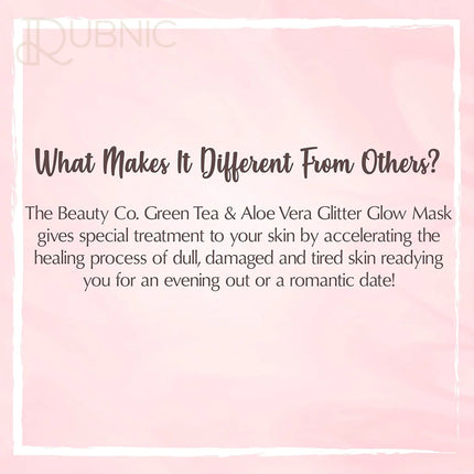 The Beauty Co. is committed to delivering products that pamper your skin while keeping it healthy. This Green Tea & Aloe Vera Glitter Glow Mask is your recipe for perfect skin. Not only does it provide instant results, but it also offers long-term benefits for your skin's health and radiance.