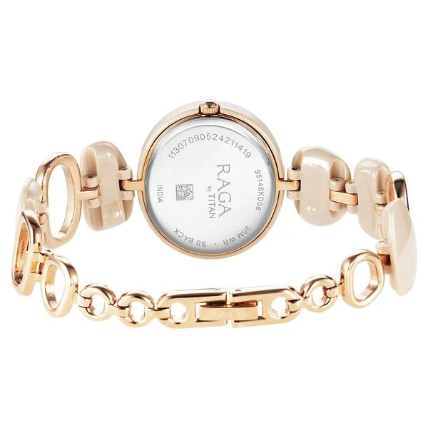 Titan Raga Ceramics Quartz Analog Beige Dial Metal Strap Watch For Women