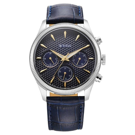 Introducing the Titan Regalia Opulent Quartz Analog Watch, a stunning addition to any man's wardrobe. This exceptional timepiece features a luxurious blue dial that beautifully contrasts with the elegant blue leather strap. Designed for the modern man, this watch seamlessly combines functionality with style. Its sophisticated look makes it ideal for both formal and casual occasions, ensuring you always make a striking impression.