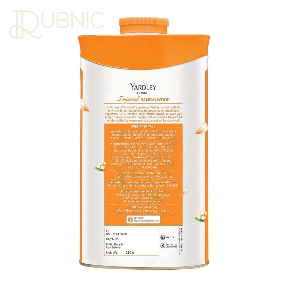 Yardley London Imperial Sandalwood Talc is crafted by blending traditional English craftsmanship with modern sensibilities. Its unique formulation ensures superior absorption and long-lasting fragrance, perfect for both men and women.